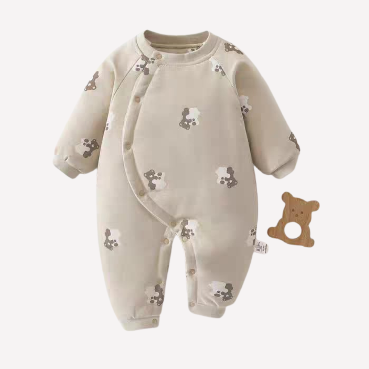 Enterizo manga larga en algodón termico triple capa, suave y agradable a la piel porque no tiene ninguna impureza ni hilos que sobresalgan. Fácil de poner y quitar por su diseño de cierre oculto de resina que facilita el cambio de pañales y ropa. De cuello alto para mantener abrigado a tu mirkat sin que entre el viento. De puño ajustado y flexible en la muñeca, agradable al contacto con la piel para que no entre el viento frío. Viene decorado con un osito bordado, seguro y limpio.