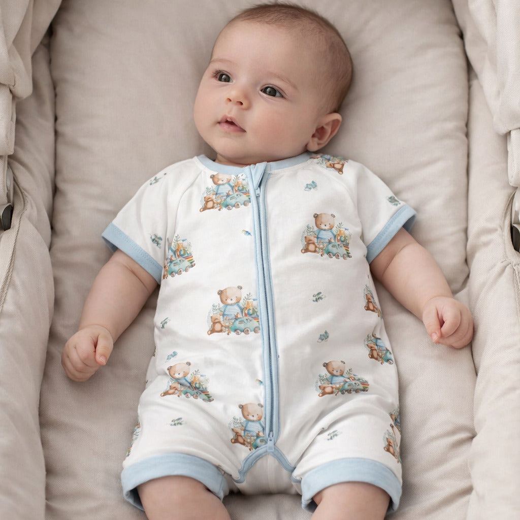 Enterizo en fibra de bambú, transpirable e hipoalergenico que absorve la humedad gracias a los microporos de sus fibras para que tu mirkat esta ultra comodo en vacaciones, en los viajes o durante el verano. Esta prende pertenece a nuestras prendas amigables con el medio ambiente.